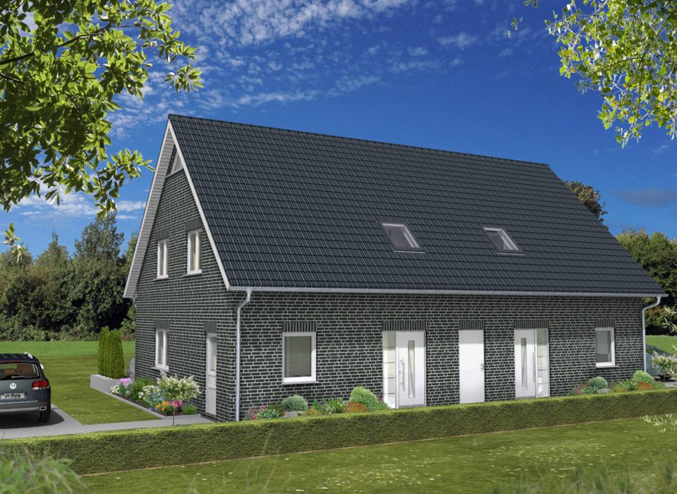 - DH „104“ Das abgebildete Haus ist ein modernes Doppelhaus mit Satteldach und Klinkerfassade. Es wirkt durch seine klare Linienführung und die symmetrische Bauweise besonders ordentlich und […]